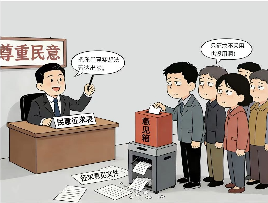 岁末年初,正是各地各部门开门纳谏、问计于民的关键节点。从年度工作谋划到民生项目敲定,从政策修订到规划编制,广纳群言、广集民智,本是让决策更接地气、更合民心的重要途径。然而,“征求意见、束之高阁”“虚心接受、坚决不改”的现象仍时有发生,让好初衷沦为走过场。