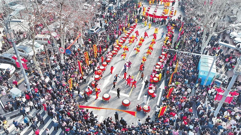 3月3日恰逢元宵节,洛阳市孟津区河源街道举办2026年元宵节踩街活动,来自街道15个社区的数千名群众演员齐聚一堂,用最传统、最热烈的方式欢度元宵佳节。 郑占波 王亚峰 摄