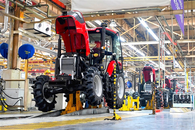 3月24日,位于洛阳市的中国一拖大拖公司总装生产线满负荷运转,一台台“东方红”拖拉机驶下生产线,发往全国各地。 张光辉 摄