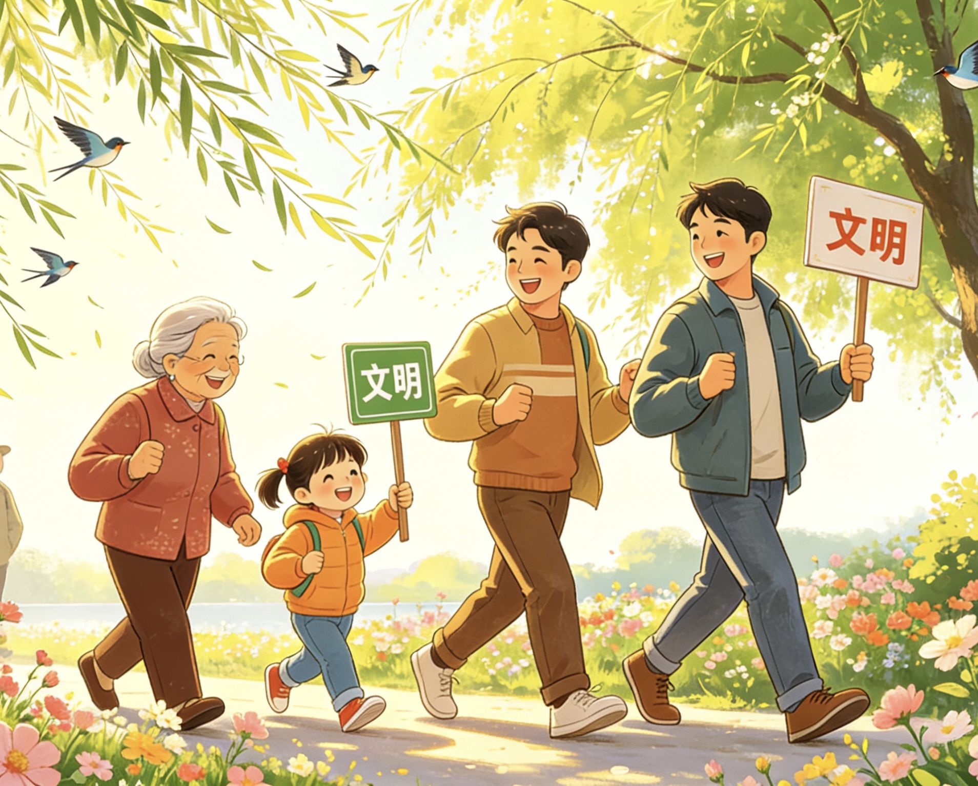 文明从来不是空洞的口号,而是体现在一言一行、一举一动之中。作为出行游客,我们应从自身做起、从点滴做起、从当下做起,自觉遵守公共秩序,在景区文明游览,在高铁上不占座、不插队。同时做好个人卫生防护,规范佩戴口罩、勤洗手,共同守护安全健康的出行环境。一言一行皆形象,一举一动显素养,只有人人守护心中的文明火种,凝聚文明共识,才能让社会处处充盈文明新风。
