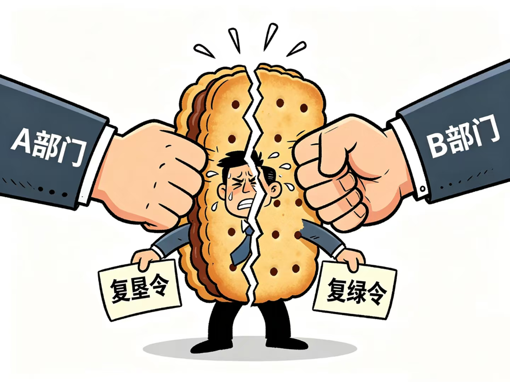 近日,据《半月谈》报道,基层治理中出现刚复垦又被要求复绿,按照一个部门规划建好的产业园却被另一部门指责“占用河道”的政策冲突现象,上级部门各吹各号、各定各调,让基层干部沦为“夹心饼干”,左右为难、身心俱疲,既造成资源浪费,也消解治理公信。